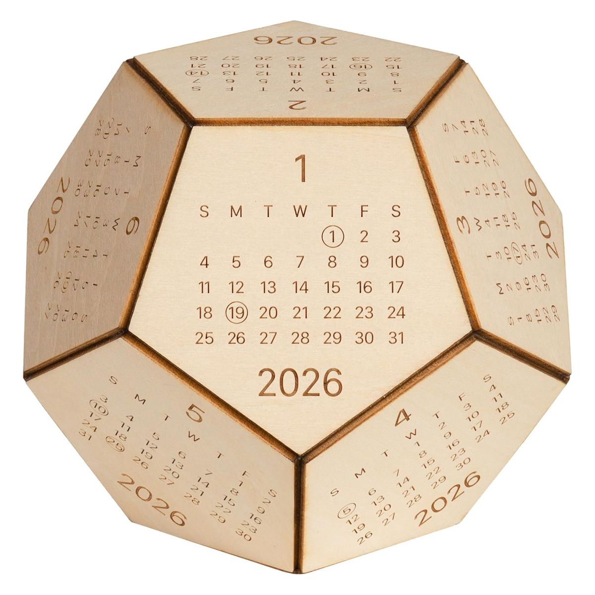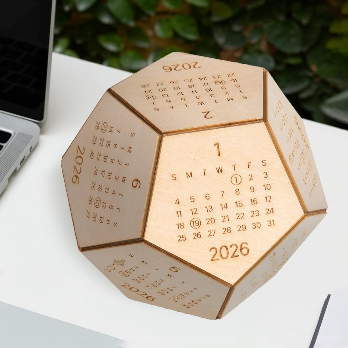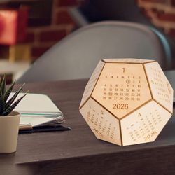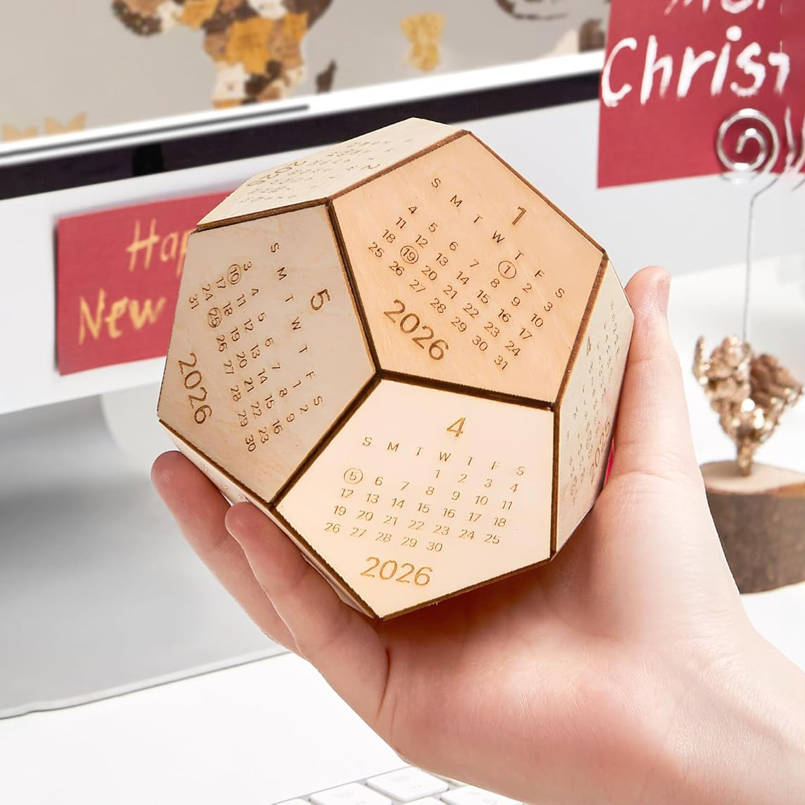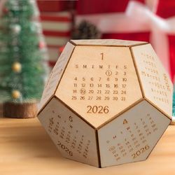 Our unique 2026 wooden calendar blocks has a unique 12 sided hexagon shape. These 2026 cube calendar serves not only as practical office tools but also as delightful desk toys, perfect for brightening up your workspace. The wood calendar itself has 12 sides for the entire year, and the covers are made entirely of natural wood.